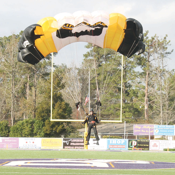BATON ROUGE — The U. S. Army sponsored the 11th Annual Army Red Stick Bowl Saturday at Denham Springs High School. The event has become a classic with All-Stars from area high schools competing. The Black Knights won 41-0. The Army put on a skydiving exhibition before the game.
